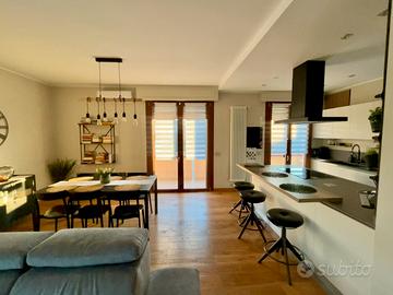 o Zona giorno open space di 40 mq, luminosa, completamente esposta a sud, con 3 porte finestre che affacciano sul balcone angolare.
