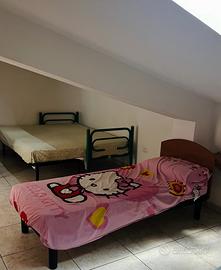 Mansarda con due stanze grandi con 2 letti matrimoniali e un letto singolo e bagno, tavolo 4 sedie, frigo e condizionatore.