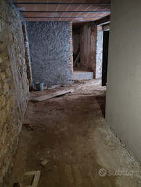 Il piano terra é costituito con ampia zona giorno con camino antico, dove poter ricavare soggiorno, cucina, 2-3 camere, bagno.