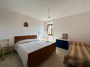 Casa cielo-terra in vendita in frazione Santo Stefano, in via Moscatelli. Disposta su due livelli, è ampia 70 mq ed è così suddivisa: ingresso su salotto, cucina abitabile con affaccio su giardino di pertinenza. Al piano superiore si trovano due ampie e luminose camere da letto e un bagno. Annessa soffitta. Antistante la casa si trova un locale di pertinenza ristrutturato nel 2005, ad uso deposito o depandance, con bagno interno. Terreno di circa 370 mq - Parcheggio scoperto in piazzole di circa 60mq di pertinenza