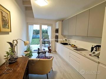 Rif:593406 (127900238) - VETTORAZZO LUCA promuove con COMPETENZA, PROFESSIONALITA' E GESTIONE A 360°, IN ESCLUSIVA..NUDA PROPRIETA' In casa Clima "A": raffinato bilocale NUOVO con giardino privato. Dotazioni: arredo nuovo di qualità, blindato, tapparelle alluminio motorizzate, tenda da sole con sensore pioggia, giardino con impianto irrigazione, riscaldamento a pavimento e pannelli fotovoltaici. Atrio, soggiorno-cottura (finemente arredato di cucina), giardino, disbrigo, elegante bagno finestrato, ripostiglio-lavanderia e camera matrimoniale. Completo di cantina "Vettorazzo Luca, per vendere ed acquistare il tuo immobile in tutta serenità" - Classe: A - IPE: 39.77 kWh/mq anno
