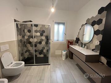 120 mq di casa + 50 dì depandance , con 2 bagni (uno padronale e uno in stanza), 3 camere da letto un soggiorno cucina open space affacciato sul giardino di circa 100 mq, compreso di patio e di depandance di circa 50 composta da cucina, zona lavanderia e bagno e uno sgabuzzino. Vendo arredata di cucina, parete della tv e camera da letto, pronta per abitare.