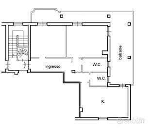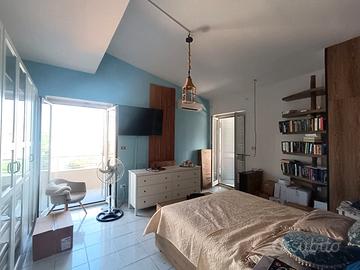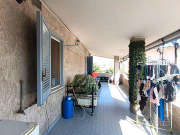 L'appartamento è suddiviso in corridoio, 2 camere, 2 bagni e cucina con unico balcone che serve tutti gli ambienti e che si allarga a terrazzo da lato della cucina.