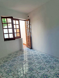 Salotto, 3 camere, cucina con angolo cottura e frigorifero Smeg, 2 bagni uno dei quali con lavatrice nuova, giardino di 100 mq, inoltre ripostiglio esterno 5 m e caldaia, pavimenti e rivestimento bagno in ceramiche di Vietri;
