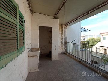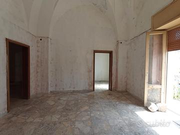 Pulsano, Via Roma n. 80, a pochi passi dal centro storico e dal bellissimo Castello de Falonibus, in una delle principali vie del paese, proponiamo in vendita una casa d'epoca al primo ed ultimo piano, con ingresso indipendente dalla strada e terrazzino a livello. L'abitazione è molto luminosa e necessita di lavori di ristrutturazione. Una parte della casa è costituita da camere con i tipici soffitti a volta e l'altra parte, quella che affaccia nell'interno ha camere con solai piani, questi ultimi realizzati di recente. È composta da: un accogliente vano d'ingresso con finestra, un grande salone con balcone alla strada dal quale si gode una bella vista panoramica, altre n. 3 camere, di cui una di passaggio, corridoio e cucina abitabile con camino che affaccia su un incantevole terrazzino coperto (mq 15), con comodo ripostiglio. Data la posizione centrale, l'abitazione si presta ad essere utilizzata anche come struttura ricettiva. La zona è servita da negozi di vario genere e la distanza dalle bellissime spiagge Bandiera Blu è di circa Km 3.