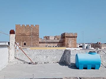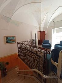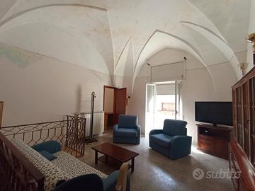 L'ingresso/soggiorno e la camera adiacente hanno soffitti a volta e balconi con vista panoramica sulla Chiesa Madre, mentre gli altri ambienti affacciano su Via Visconti e hanno vista sul Castello de Falconibus. L'immobile è dotato di climatizzatore e termo autonomo a gas. Un aspetto distintivo di questa proprietà è la presenza di un montascale, che la rende particolarmente adatta anche a chi ha difficoltà a salire le scale. Grazie alla sua posizione privilegiata, l'abitazione si presta perfettamente anche ad essere utilizzata come struttura ricettiva. Il lastrico solare/terrazzo, al quale si giunge da una scala interna in muratura, avendo una bella vista panoramica, se opportunamente attrezzato con arredi per esterni (poltroncine, divanetti, tavolini) e strutture mobili coprenti, rappresenta un ulteriore spazio che si presta per essere utilizzato soprattutto nelle calde serate estive.