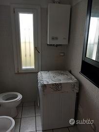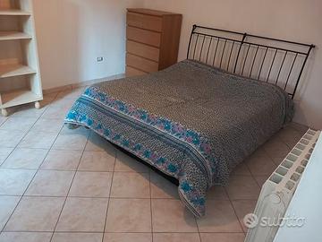 soggiorno spazioso con cucina e bagno al piano terra,piano superiore una camera da letto con bagno,posto auto e bici,giardino.