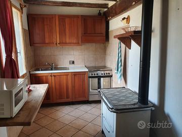 Casa con un appartamento già abitabile, composto da sala da pranzo con camino, cucina, bagno al piano terra e camera da letto matrimoniale al piano superiore (arredato). Altra metà della struttura da ristrutturare completamente.