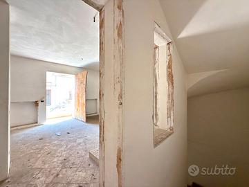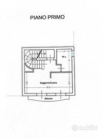 Tramite scala interna si accede al piano primo con cucina/soggiorno unico ambiente e bagno con doccia, mentre al piano secondo troviamo la zona notte con 1 camera matrimoniale, 1 cameretta e bagno con doccia.