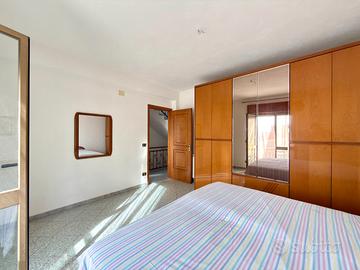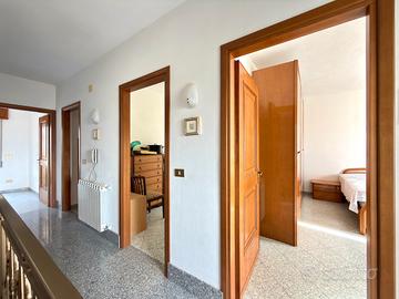Al piano primo troviamo la zona notte composta da corridoio di disimpegno, 2 camere matrimoniali, 1 cameretta e bagno con doccia; il piano ha accesso alla corte esterna esclusiva tramite un ingresso separato, oltre appezzamento di terreno soprelevato al quale si accede da scala esterna adiacente al fabbricato.
