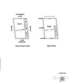 L'immobile si sviluppa su 2 elevazioni di 71 mq a piano, composto al piano terra da 2 vani comunicanti con doppio affaccio sulle due vie, bagno e ripostiglio, da scala interna si accede al piano primo composto da un unico vano sottotetto a doppia altezza. Come si evince dal servizio fotografico l'immobile è completamente da ristrutturare.
