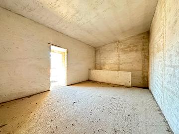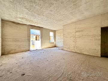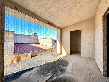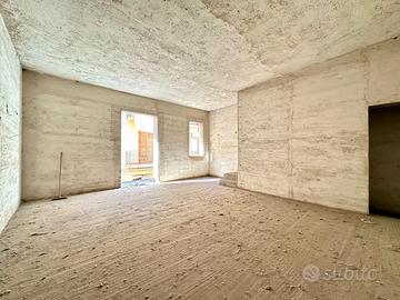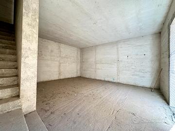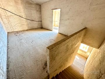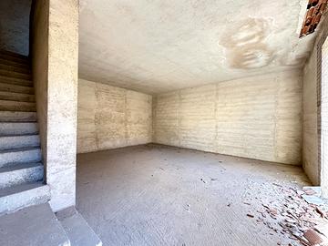 L'immobile si sviluppa su 4 elevazioni di mq. 43 a piano ed è così composto: al piano terra unico vano ad uso garage, tramite scala interna si accede al 1° piano con ingresso su unico vano allo stato grezzo, 2° piano unico vano anch'esso allo stato grezzo, al piano 3° dietro stanza e terrazzo coperto.