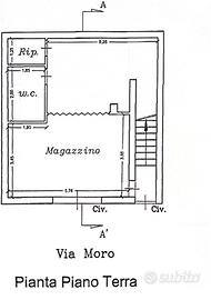 La palazzina di mq. 50 circa a piano è composta al piano terra da cucina abitabile, vano buio, ripostiglio e bagno con doccia.