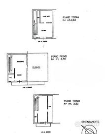 Tramite scala interna all'appartamento di piano primo si accede alla mansarda di mq. 45 posta al piano terzo, composta da due vani + w. c.
