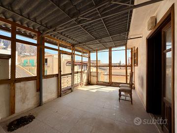 Esposta ad angolo fra le Vie Vincenzo Miserendino e Celeste l'immobile è composto al piano primo di mq. 60 da ingresso su disimpegno, ripostiglio, camera matrimoniale, bagno con doccia e soggiorno con cucinino, tramite scala interna si accede al piano secondo di mq. 60 su disimpegno, 2 camere matrimoniali e 2 bagni da completare.