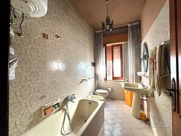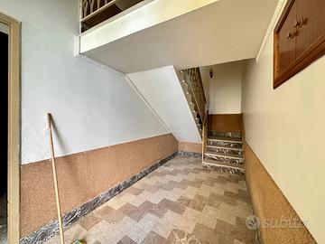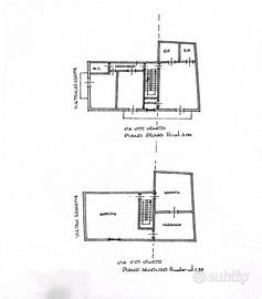 Portone di ingresso principale in Via Vittorio Veneto su vano scala con accesso ai magazzini interno ed ai piani, 1° con ingresso su soggiorno con cucinotto e due ripostigli, salotto, bagno, 1 camera da letto, e piano 2° in parte mansardato con terrazzo scoperto.
