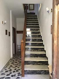 Soggiorno e cucina con relativo caminetto al piano terra corridoio con scala per accesso al piano superiore , dove si trovano tre ampie camere da letto con due bagni , un disimpegno e il corridoio dove si può accedere a mezzo di una scala di servizio al sovrastante piano mansardato munito di finestre e di un balcone di circa 8 mq. Non conteggiati nella metratura.