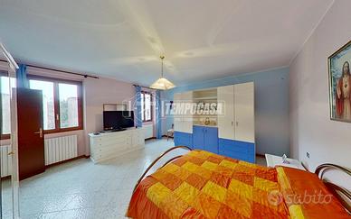 L'abitazione, in ottimo stato di manutenzione, si sviluppa su due livelli per una superficie complessiva di 158 mq, accogliendo fin dal piano terra con un soggiorno doppio, luminoso e facilmente suddivisibile in zona salotto e sala da pranzo, perfetto per la vita quotidiana e per momenti conviviali. La cucina abitabile con camino regala un'atmosfera calda e autentica, cuore pulsante della casa, affiancata da un comodo bagno di servizio. Dal piano terra si accede direttamente all'area esterna piastrellata, uno spazio riservato e funzionale da vivere in ogni stagione.