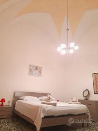 Piano inferiore letto matrimoniale con bagno, e piccola cucina, e giardino.