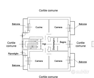 L'alloggio è sito in grazioso stabile e si compone di: ingresso su disimpegno, zona giorno e cucina abitabile con balcone che affacciano sulla corte interna, 2 ampie camere da letto con balcone, ampio bagno finestrato.