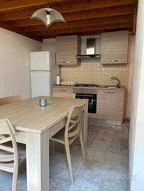 La casa si compone al piano terra di una graziosa cucina dove troviamo un soppalco in legno di pregevole fattura utile per mille usi , una camera da letto molto luminosa e un bagno