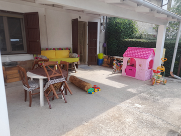 Fuori vi è una veranda con forno a legna