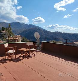 Secondo livello: ampio soggiorno con angolo cottura e camino, camera da letto , bagno ,i balconi con doppia esposizione più terrazzo di copertura di circa 40 mq con vista panoramica.