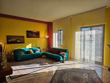 Questa con doppio ingresso copre una superficie di circa 280 mq ed è composta da un piano seminterrato dove è presente la tavernetta un piccolo bagnetto con affaccio su via marina e un grande garage con deposito con affaccio su via piemonte. Al piano rialzato si può trovare una splendida zona giorno completamente open space con adiacente una cucina, una zona pranzo e un bagno, entrambe le aree hanno affaccio tramite balcone. Infine nella zona notte accessibile tramite una scalinata in marmo è possibile trovare le camerette e la camera da letto matrimoniale. Come spazio per uso ripostiglio vi è un ampio sottotetto. Gl'infissi sono di tipo a taglio freddo e gl'impianti sono quelli di fine anni 90. La casa è servita di riserva idrica.