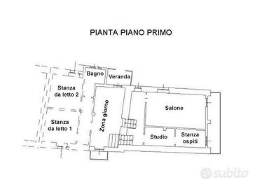 Il primo piano, la cui consistenza catastale è di circa 130 mq, è così diviso: