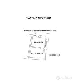 L'immobile si sviluppa su due piani, piano terra e primo piano, ed ha due aree esterne di proprietà con accessi differenti.La prima, come da foto sita di fianco alla porta di ingresso, ha una superficie di 69 mq ed è costituita da un fabbricato rurale da cui internamente si accede a un giardino. Il tetto del fabbricato è da ristrutturare.La seconda,raggiungibile sia dall'interno dell'abitazione,tramite locale lavanderia, che da un vicolo esterno,si compone di una rimessa per gli attrezzi di 25 mq e di un orto di 55 mq.
