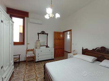 A Pulsano in Via Vittorio Emanuele II, 50, zona centrale, a pochissimi passi dal Convento dei Padri Riformati e dagli altri monumenti storici, proponiamo in vendita una casa indipendente al piano terra con cortile interno di pertinenza. La casa ha una superficie di mq 100 circa, è in buone condizioni e tutti gli ambienti sono finestrati e luminosi. È composta da: ingresso/corridoio, 2 ampie camere di cui una con balcone che affaccia sulla strada, cameretta, bagno completo di doccia, cucinino e soggiorno/pranzo con camino, dal quale si accede ad un ampio cortile interno, mq 30, da utilizzare durante le belle giornate. L'abitazione è dotata di termo autonomo ed ha una scala in muratura che dal cortile conduce al lastrico solare. È situata in una posizione strategica in quanto è collocata lungo una strada principale del paese che conduce al mare ed è anche a due passi dal centro storico. Si presta ad essere utilizzata come residenza privata ma è anche ideale come casa per le vacanze. La zona è servita da negozi di vario genere e la distanza dalle bellissime spiagge con acque cristalline della Marina di Pulsano è di circa km 1,5