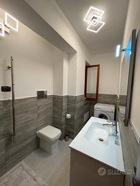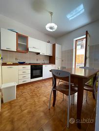 1 camera matrimoniale, 1 cameretta con letti a castello, 1 bagno, cucina-soggiorno attrezzati con tutto il necessario per cucinare, piccolo terrazzino, aria condizionata. Zona tranquilla ma a due passi dal mare.