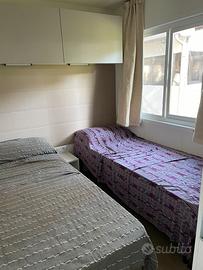 Casa mobile arredata nel villaggio Malva al n. 24 del campeggio Parco della Gallinara Lido dei Pini. Tre camere, due bagni, cucina completa con lavastoviglie, armadio esterno con lavatrice, impianto tv, aria condizionata con pompa di calore. Contattare ufficio vendite Signora Nadia 393 0025960