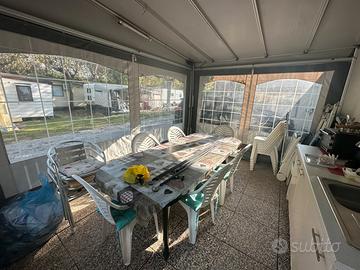 Dotata di condizionatore, stufette per il riscaldamento, predisposizione impianto radio e tv e di scaldabagno. Accessori : veranda esterna chiusa 4x3mt fatta su misura da Italtende.