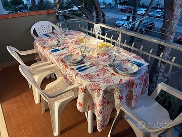 A soli 100 mt dal mare immerso nella pineta offriamo trilocale con 2 camere matrimoniali, soggiorno con cucina e terrazzo per cene/pranzi/aperitivi all'aperto in zona Pratoranieri Nord.