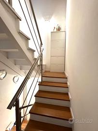 È disposta su tre livelli per un totale di circa 90 mq. Al piano terra c'è la zona giorno con cucina e salotto openspace e un piccolo sottoscala. Ci sono termosifoni e caminetto con inserto a pellet.