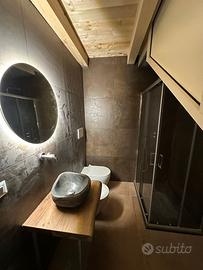 La casa offre una distribuzione intelligente e funzionale degli spazi: Al piano terra troviamo una moderna cucina, il soggiorno con due bagni completi e un accogliente soppalco che ospita un letto aggiuntivo.