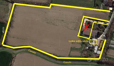 Proprieta' e' composta da una casa singola di circa 100mq (aggiunta mansarda di 50mq) e ampio giardino. Dietro la casa è presente un ampio lotto di terreno (circa 1500 mq) con capacità edificatoria di 800 mc, circondato dalla natura e confinante con un canale consorziale per costruire una villa o una bifamiliare. Ideale per chi vuole avviare un'attività che vogliono vivere a contatto con la natura, in locazione tranquilla, senza rumore, né traffico.