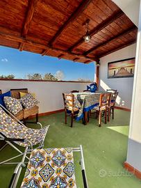 Casetta Rossa sopra: 4 posti: ingresso doppio in cucina e salone, una camera matrimoniale, una camera doppia con 2 letti singoli, un bagno grande con box doccia, doppia terrazza. Il prezzo è fittizio, cambia in base al periodo