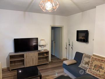 Grande camera matrimoniale, grazioso bagno con vasca e un luminoso e accogliente open space composto da salotto e cucina la quale é munita di elettrodomestici, lavastoviglie e piano cottura a induzione