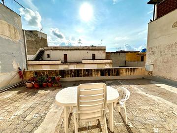 Nel cuore di Terrasini, in via G. Verdi, si trova questa casa semi indipendente sviluppata su tre livelli, caratterizzata da ambienti ampi e funzionali e da spazi esterni che ne valorizzano la vivibilità. Attraverso il portoncino d'ingresso si accede alle scale ad uso esclusivo, che conducono al primo piano, dove si sviluppa la zona notte. Qui un disimpegno centrale distribuisce gli ambienti: una spaziosa camera matrimoniale con apertura sul balcone, una camera singola anch'essa con affaccio sullo stesso balcone, due ulteriori camere singole cieche, ideali come studi, stanze guardaroba o camere per ospiti, un bagno con vasca e finestra e un comodo ripostiglio. Salendo al secondo piano si raggiunge la zona giorno, un ambiente accogliente e ben organizzato, dove la cucina in muratura rappresenta il cuore della casa. Adiacente ad essa si apre un ampio terrazzo, uno spazio esterno estremamente fruibile, perfetto per momenti di relax, pranzi all'aperto o per essere eventualmente chiuso, ampliando così la superficie abitabile e rendendo l'immobile ancora più versatile. Al terzo piano si trova il lastrico solare, dove sono collocati il recipiente dell'acqua e l'antenna. Questo livello offre ulteriore potenziale, sia come area tecnica sia come spazio da personalizzare secondo le proprie esigenze.