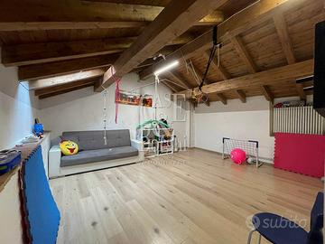 Al piano sottotetto attualmente troviamo un'area giochi per bambini/palestra ma che risulta essere uno spazio versatile in quanto, in futuro, può diventare una terza camera da letto, uno studio o zona hobby, adattandosi perfettamente alle esigenze di una famiglia che cresce.