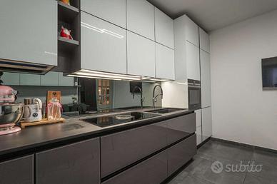 La cucina abitabile, anch'essa ampia, presenta un arredo moderno con piano a induzione e offre spazi ben organizzabili.