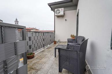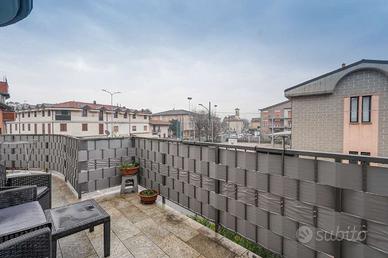 Il soggiorno ha una metratura eccezionale, versatile e facilmente arredabile, arricchito dalla presenza di un camino a pellet con uscita d'aria anche in una delle due camere. Da qui si accede, tramite porta finestra, a un bellissimo terrazzo abitabile, spazioso e ideale per momenti di relax o convivialità all'aperto.
