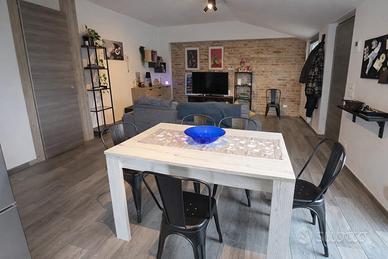 Porzione di casa semi-indipendente ristrutturata con ampio magazzino - Frisa (CH) Nel comune di Frisa, in contesto tranquillo e riservato, proponiamo in vendita una porzione di casa semi-indipendente completamente ristrutturata, ideale per chi è alla ricerca di una soluzione pronta da vivere, senza rinunciare a spazi accessori difficili da trovare. L'abitazione si sviluppa al piano primo per circa 95 mq e accoglie ambienti moderni, ben distribuiti e particolarmente luminosi. La zona giorno si apre in un ampio open space soggiorno-cucina, uno spazio conviviale e funzionale, valorizzato da finiture contemporanee e da una piacevole sensazione di continuità tra gli ambienti. La cucina, già presente, è compresa nel prezzo, rendendo l'immobile immediatamente abitabile. Dalla zona giorno si accede a un comodo balcone/ terrazzino. Un ripostiglio completa la zona giorno, mentre la zona notte ospita due camere da letto e un bagno finestrato, completamente ristrutturato con materiali moderni e linee pulite. Al piano terra si trova uno degli elementi più interessanti della proprietà: un ampio magazzino/garage di circa 100 mq, uno spazio estremamente versatile che può essere utilizzato come autorimessa, deposito, laboratorio oppure trasformato in una grande taverna o ambiente hobby, a seconda delle esigenze. L'immobile è stato oggetto di ristrutturazione nel 2019 e presenta dotazioni attuali e funzionali, tra cui infissi in PVC con doppio vetro, portoncino blindato, caldaia a condensazione e climatizzazione con due split. È inoltre presente la predisposizione per camino o canna fumaria. Una soluzione che unisce indipendenza, comfort e versatilità, perfetta sia come abitazione principale che per chi necessita di spazi accessori importanti. ? 108.000 comprensivo di cucina.