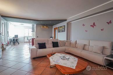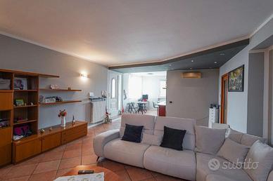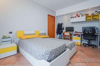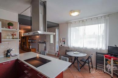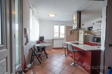 Adiacente al soggiorno troviamo un pratico ripostiglio, attualmente utilizzato come lavanderia, che lo rende particolarmente funzionale per le famiglie più numerose. La zona giorno si completa con una bella cucina, ben illuminata grazie alla doppia esposizione, arredata in stile americano e dotata di piano a induzione.