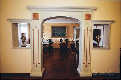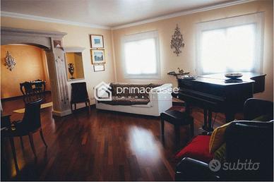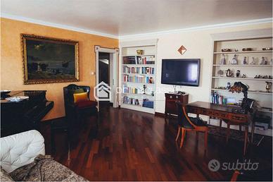 Il salone ospita una grande e raffinata zona conversazione/tv, e si affaccia in un esclusivo terrazzo che consente di godersi momenti di relax e condivisione in tutte le ore della giornata. La cucina attigua al salone è una vera perla di stile e design, un grande ambiente per condividere un pasto o per uno show cooking in presenza di ospiti. La zona notte è composta da una prima master room, dotata di una grande cabine armadio e confortevole bagno. Troviamo poi separate due ampie singole camere ed un raffinato bagno con vasca e doccia oltre. Una lavanderia, altre cabine armadio ed un ingresso di servizio completano la zona notte. Il pregiato parquet di rovere, i rivestimenti in cucina e nei bagni conferiscono ulteriore prestigio allimmobile.