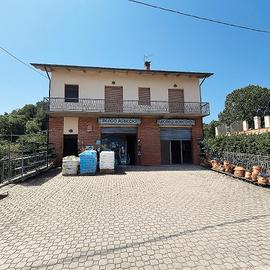 Casa singola di complessivi 300 mq, circondata da un giardino privato, la proprietà si sviluppa su più livelli e offre ampi spazi sia residenziali che accessori. L'abitazione principale si trova al primo piano, la zona giorno si compone di un ampio soggiorno con accesso diretto al terrazzo, una sala da pranzo anch'essa con accesso a terrazzo e una cucina, la zona notte è composta da tre spaziose camere matrimoniali, una delle quali con uscita su terrazzo, un bagno e un ampia soffitta a piano secondo. Il piano terra ospita locali adibiti a magazzino e deposito per circa 85 mq, oggi utilizzati da un'attività commerciale ben avviata, completa di servizio igienico. Completano la proprietà ulteriori fondi al piano seminterrato e un giardino e scoperto privato che circonda la casa. Su richiesta è possibile acquistare anche l'attività commerciale attualmente operativa e ulteriore terreno edificabile adiacente. Rif. VT/282 Ape G