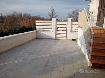 La casa è composta da cucina, salotto con divisorio di una vetrata scorrevole, camera matrimoniale, bagno, ripostiglio( con possibilita di fare una cameretta piccola)...la.casa e tutta ristrutturata sia dentro che fuori c è anche l impianto idropellet ripostiglio posto fuori mattonellato con tettoia in legno giardino e posti auto...