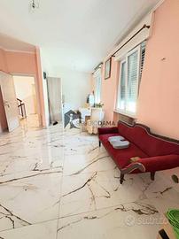 in abitazione di sole due unità appartamento completamente ristrutturato posto al piano semi primo, ingresso, ampio salone con angolo cottura, due ampie camere matrimoniali, bagno, balcone, garage con passo carraio esclusivo e piccolo posto esterno privato. Termoautonomo, nessuna spesa condominiale. Ottime finiture, impianti rifatti, caldaia nuova, infissi nuovi, pavimenti nuovi.